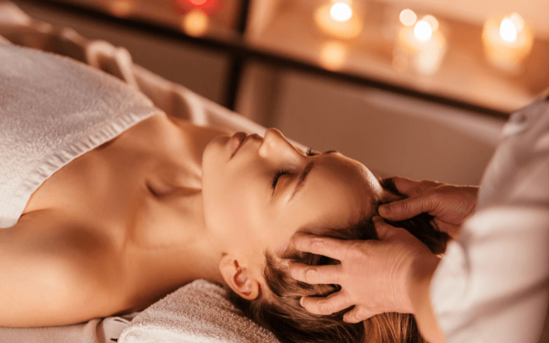 Focuses on relieving tension in the neck, shoulders, and scalp